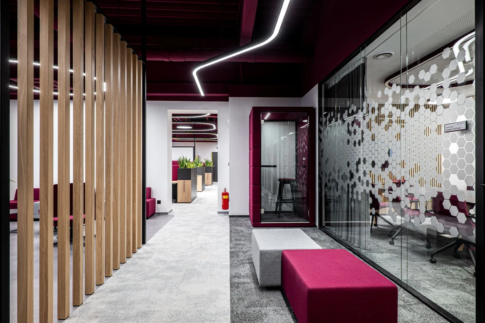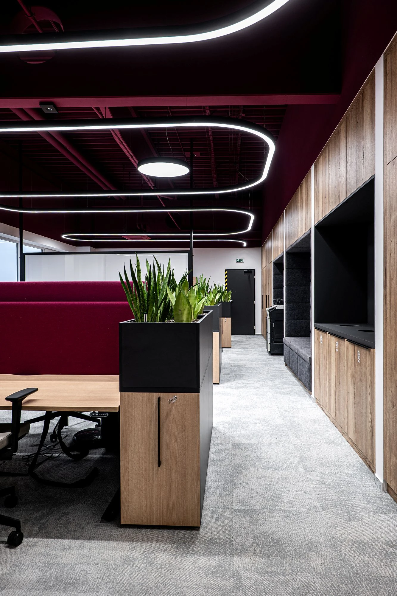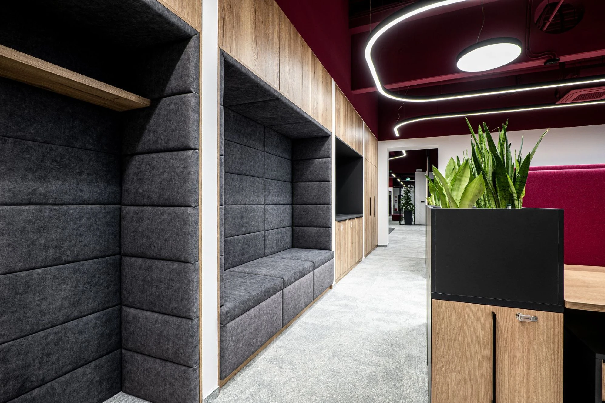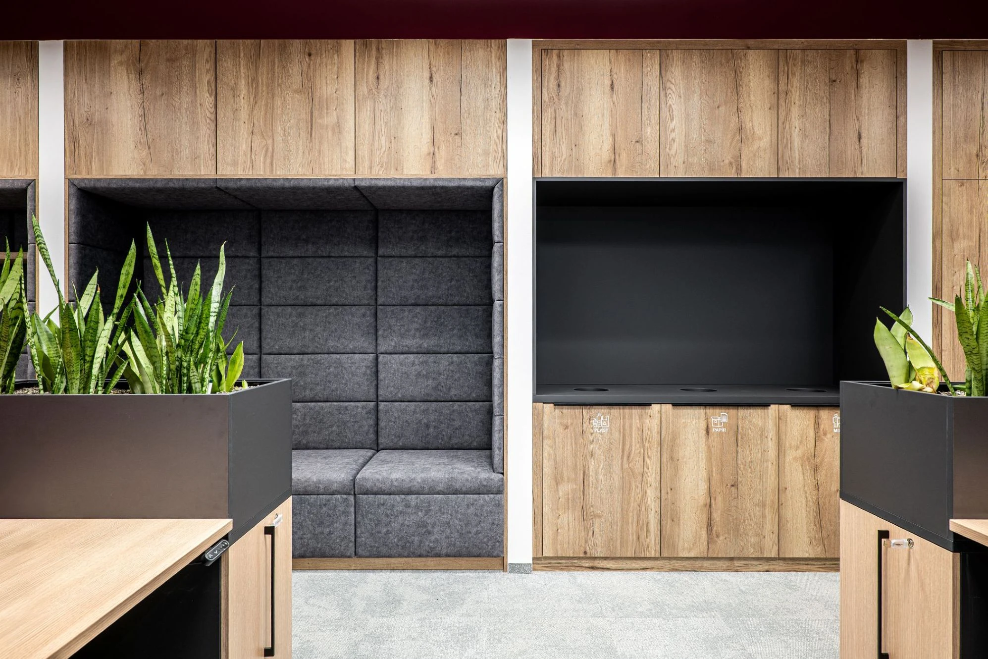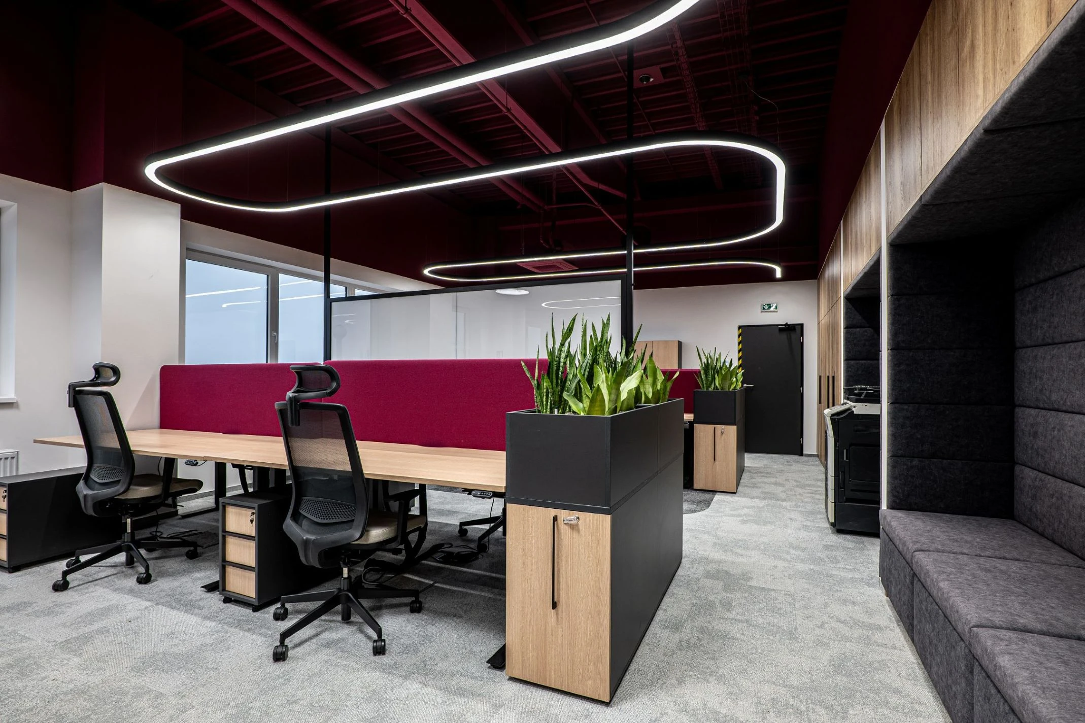 Zpracovali jsme projekt interiéru a následně zajistili kompletní realizaci včetně koordinace stavebních prací a samotné dodávky fit-outu. Součástí projektu byla realizace administrativních prostor, dodávka kancelářského a sedacího nábytku, akustických řešení, koberců, příček, akustických budek a integrace živých rostlin do pracovního prostředí.